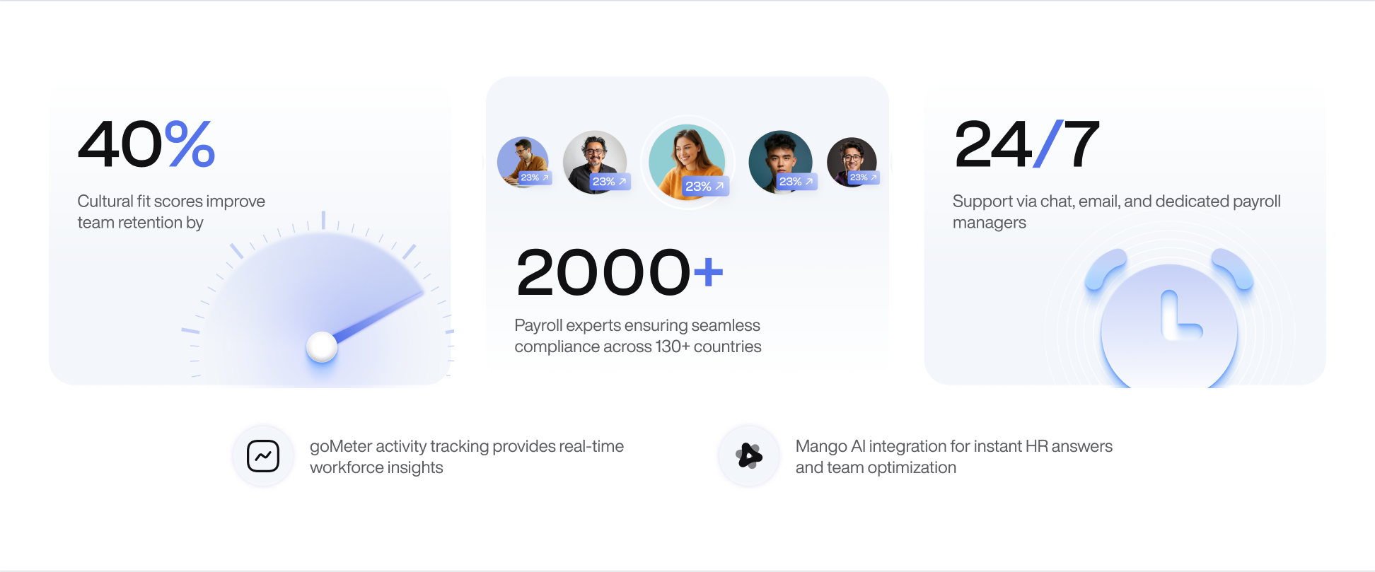 Run compliant payroll in 130+ countries with built-in cultural insights, alignment tools, and performance tracking for every deployment.